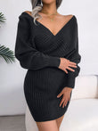 Rib-Knit Dolman Sleeve Sweater Dress